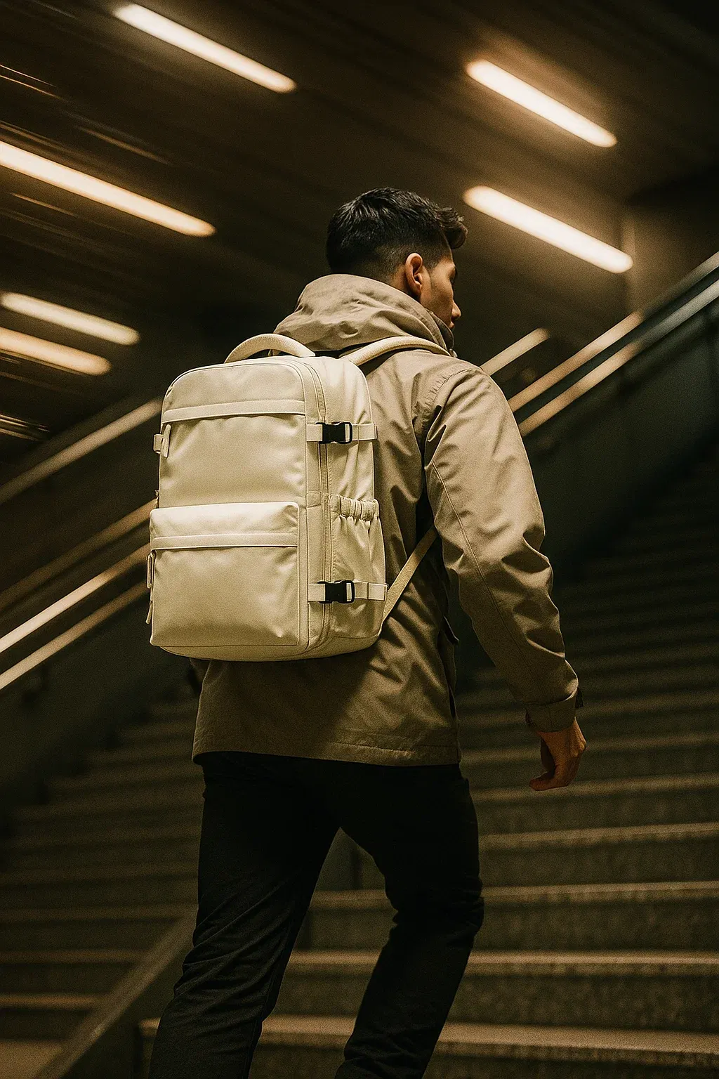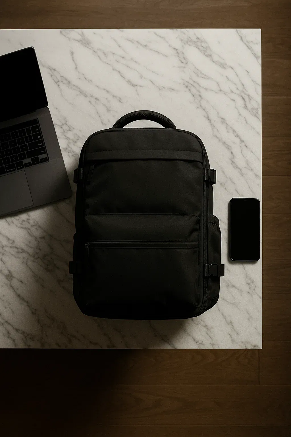 Our backpack features built-in vacuum compression technology that maximizes space, waterproof premium materials to protect your gear, and an ergonomic design for all-day comfort — all wrapped in a sleek, minimalist look.